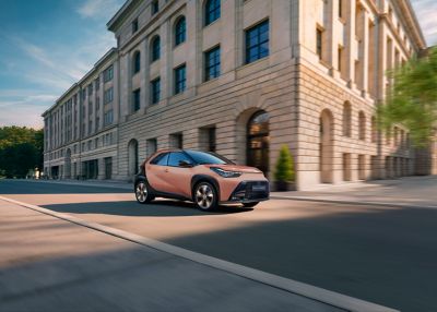 האייגו X ההיברידית נולדה לחייים האורבנים. הזריזות שלה בולטת במיוחד עם רדיוס סיבוב של פחות מ-5 מטרים, שמקל על תמרון ברחובות צפופים ועל חניה במקומות מאתגרים. המתלים, ההיגוי והבלמים עודכנו כדי לשפר את חווית הנהיגה, בדגש על תחושת הדיוק והתגובתיות. התוצאה היא תחושת Fun to Drive - קלילה, מדויקת ונעימה, גם בנסיעות קצרות וגם במעבר לכביש בין-עירוני. תנוחת הנהיגה הגבוהה מעניקה שדה ראייה מצוין, ופלטפורמת GA-B תורמת למרכז כובד נמוך ולמרכב קשיח שמעניקים לדגם תחושת יציבות וביטחון.
